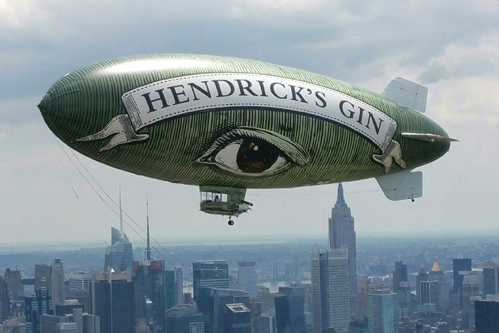 What an astonishing world we live in! The Hendricks Gin Blimp just flew over our neighborhood. It's emblazoned with the name of the product and the all-seeing eye of the Illuminati.
