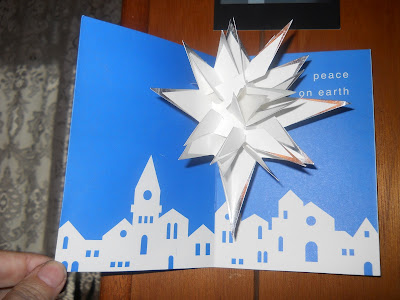 Above at Top:  The scanner didn't do justice to Marianne's card, which was smooth white with a very light sprinkling of glitter and three elegant black snowflakes glued to it.  A lot of work went into that.